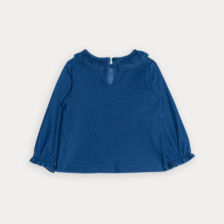 Blusa De Chambray Azul Oscuro Manga Larga Con Cuello Para Bebe Niña