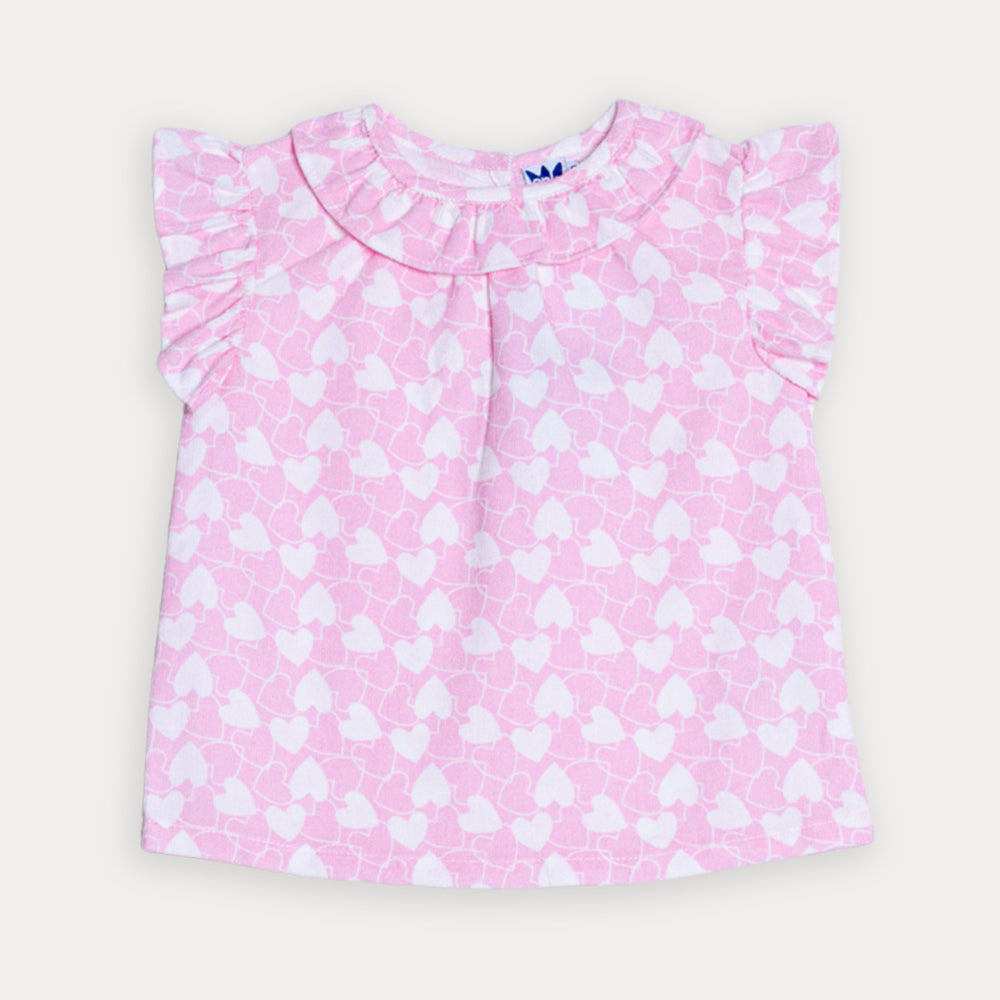 Blusa De Corduroy Rosada Con Estampado De Corazones Blancos Para Bebe Niña