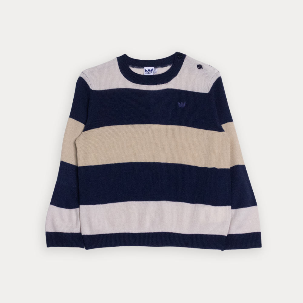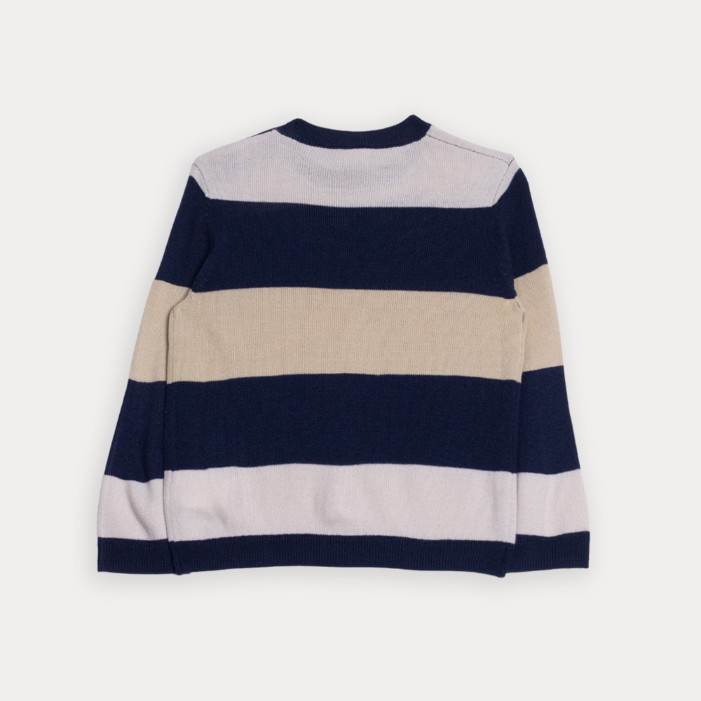Suéter Tejido De Rayas Azul, Arena Y Biege Para Bebe Niño