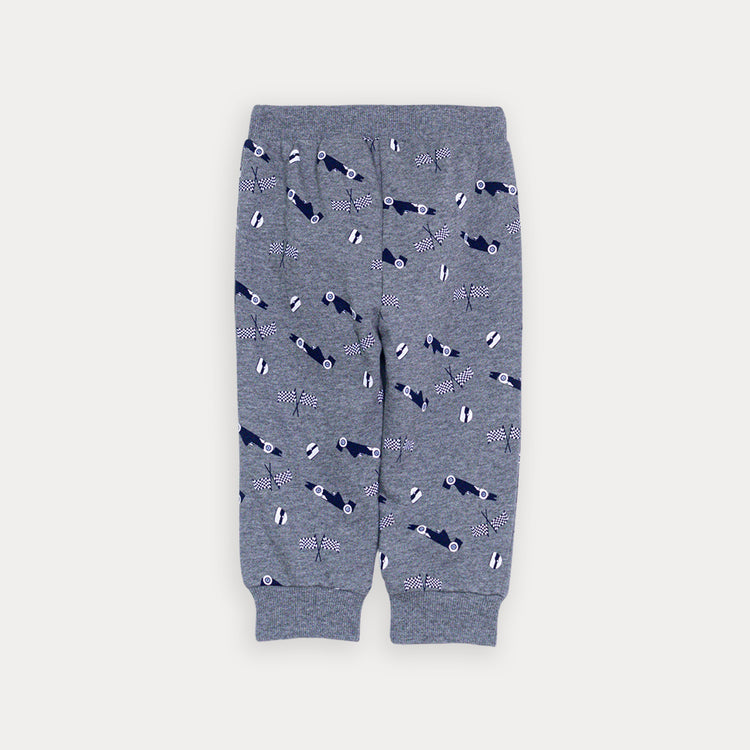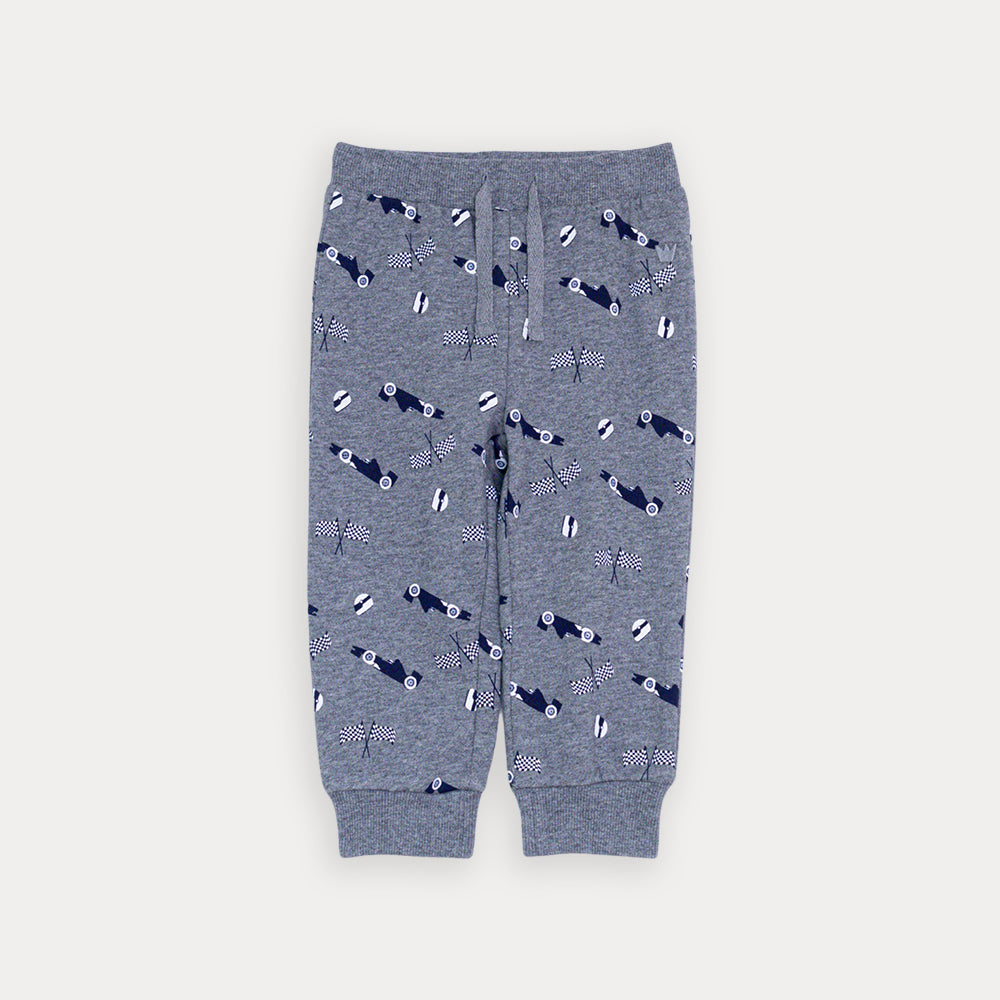 Mono De Algodón Gris Claro Con Estampado De Carritos Con Elástico En La Cintura Para Bebe Niño