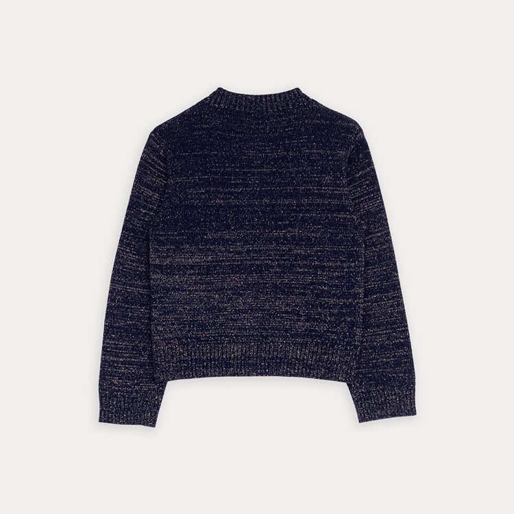 Cardigan De Algodón Tejido Azul Marino Con Detalle De Hilos Dorados Para Niña