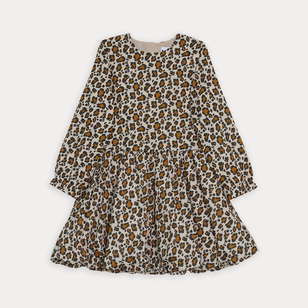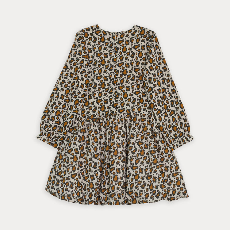 Vestido De Popelina Ligera Manga Larga Con Estampado De Leopardo Para Niña