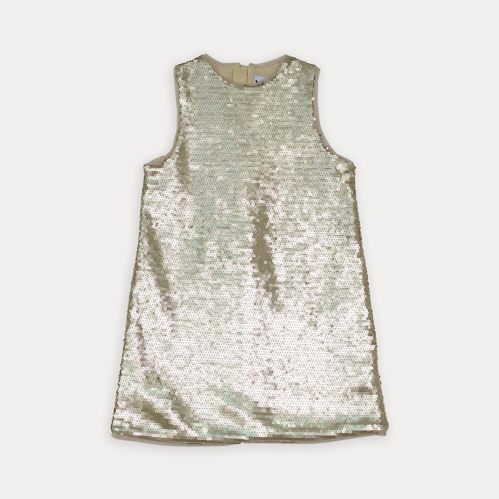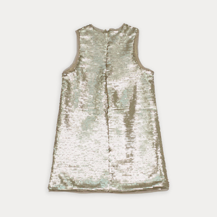 Vestido de Capas Color Hueso, con Lentejuelas Plateadas para Niña