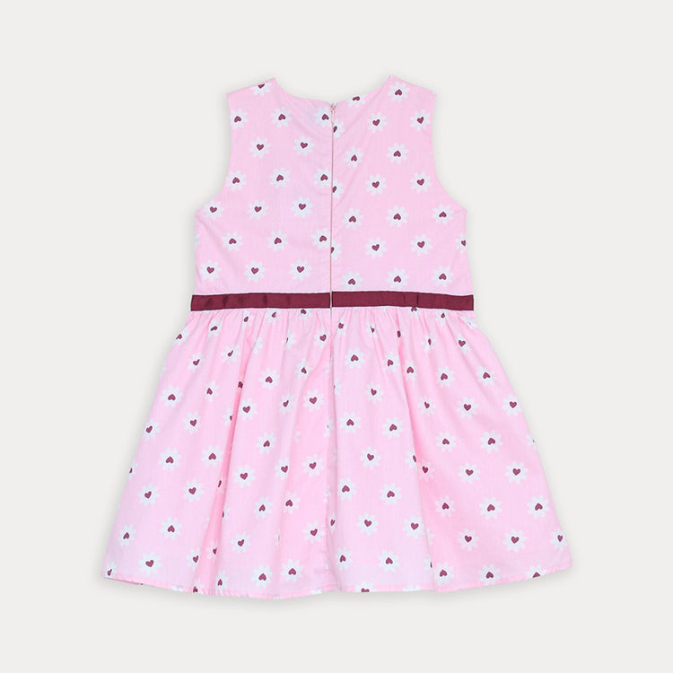 Vestido De Popelina Rosado Con Estampado De Flores Blancas Para Niña