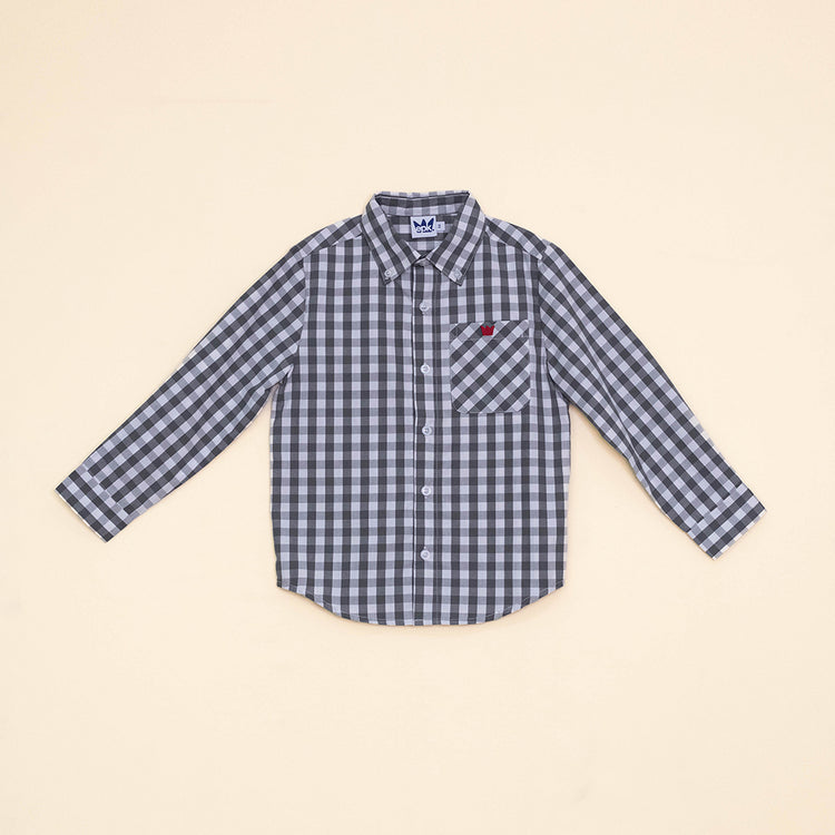 Camisa Manga Larga de Flannel con Estampado de Cuadros Caqui, Negros y Grises para Niño