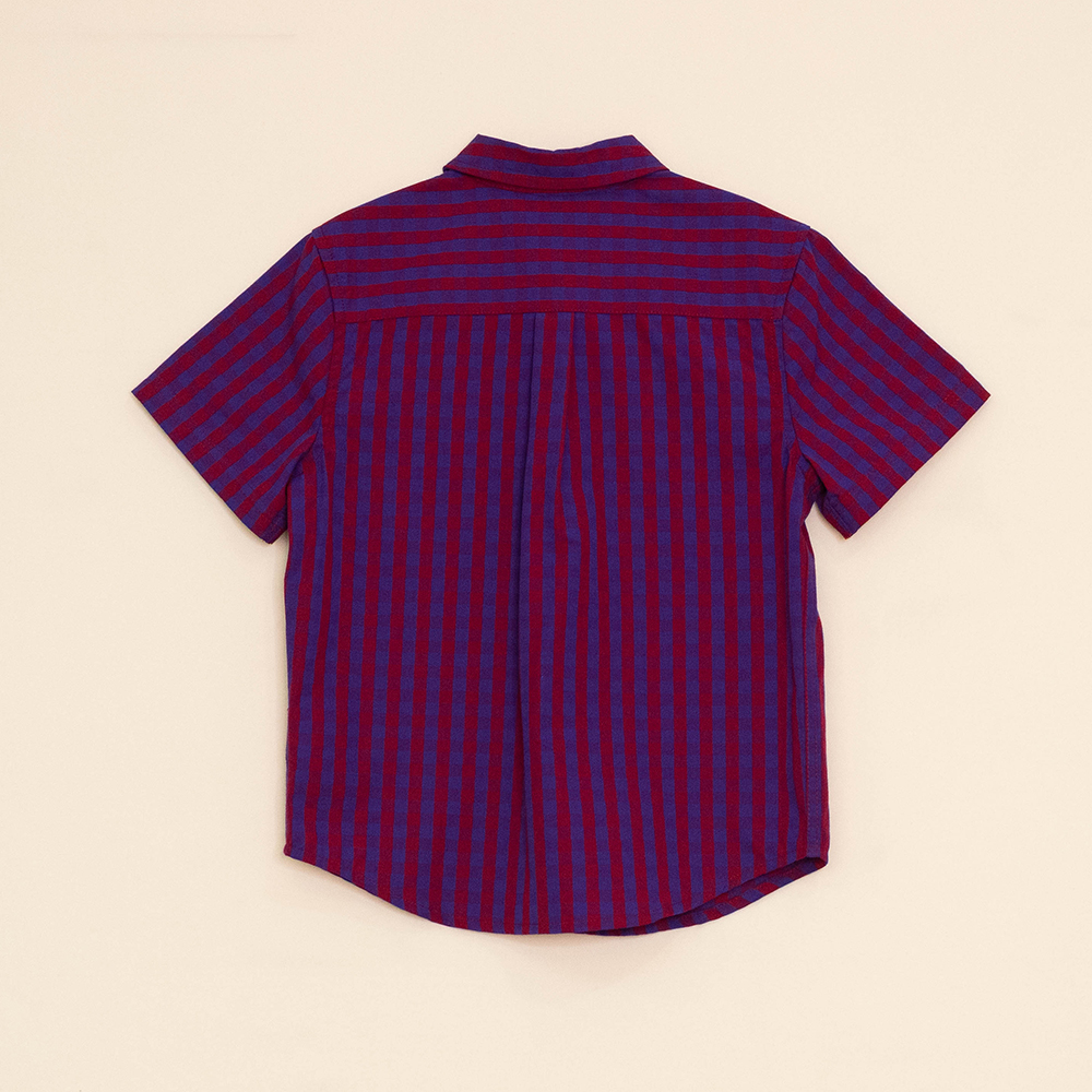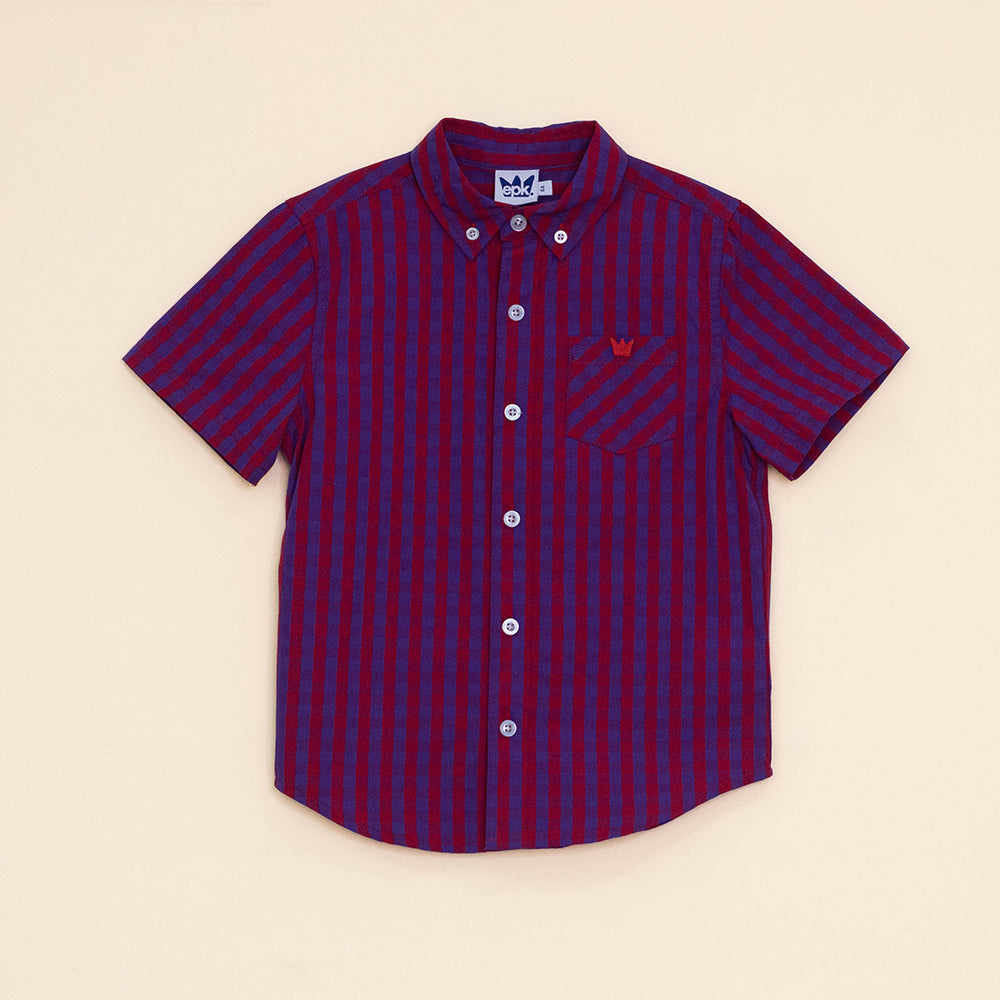 Camisa con Estampado de Cuadros Azules y Beige, Manga Corta, para Niño