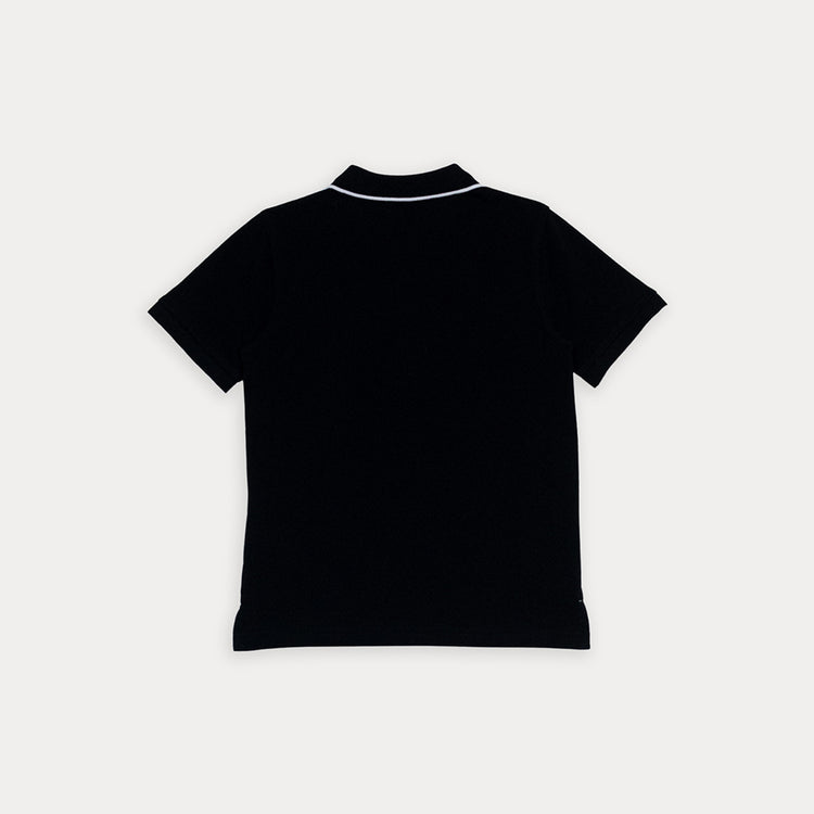 Chemise De Piqué Negro Con Bordado Blanco Para Niño