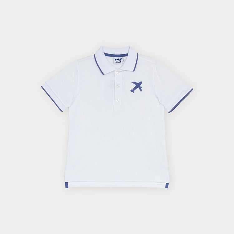 Chemise De Piqué Blanco Con Bordado De Avión Para Niño