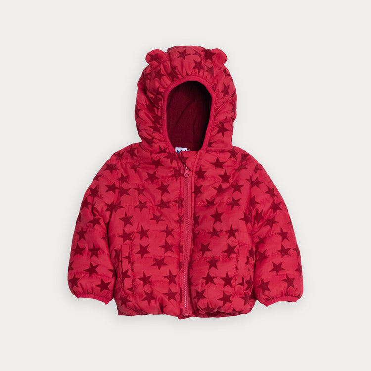Chaqueta Acolchada Roja Con Estrellas De Terciopelo Vinotinto Para Bebe Niña