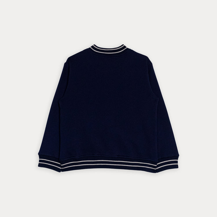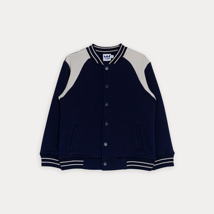 Chaqueta De Tela Gruesa Azul Marino Con Detalles En Crema Para Niño