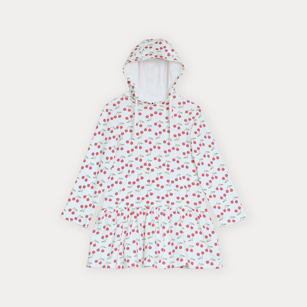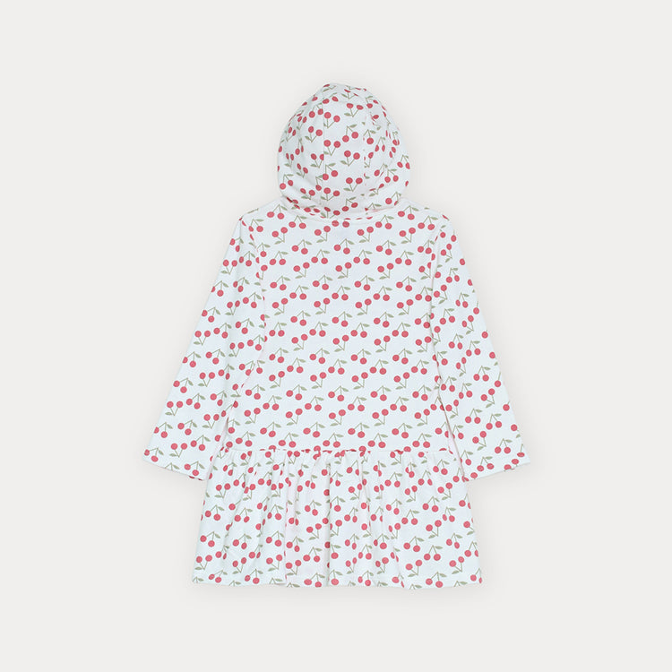 Vestido Suéter De Algodón Crema Con Estampado De Cerezas Para Niña