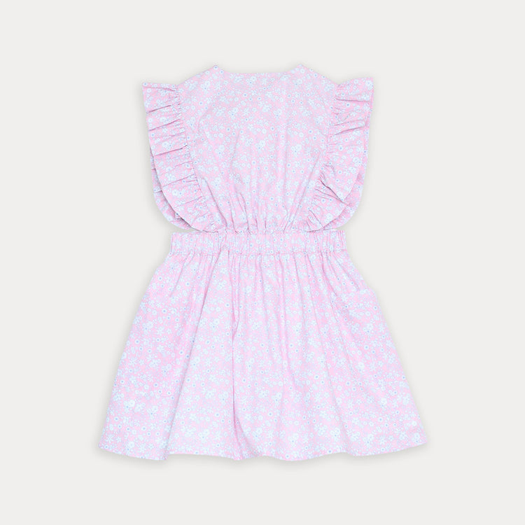 Vestido De Popelina Rosado Con Estampado Floral Para Niña