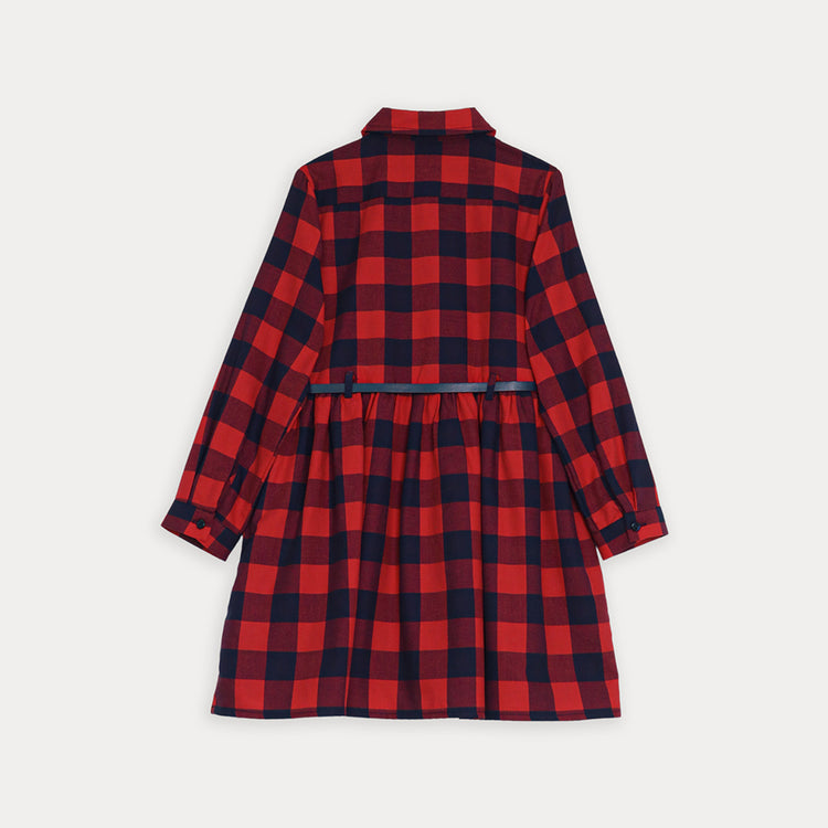 Vestido De Flannel Twill Con Estampado De Cuadros Rojos Para Niña