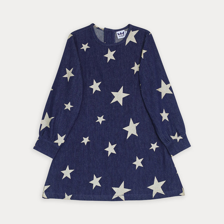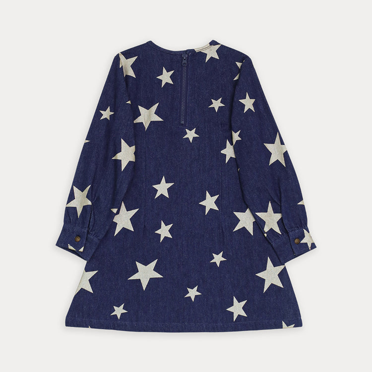 Vestido De Jean Oscuro Con Estampado De Estrellas Doradas Metálicas Para Niña