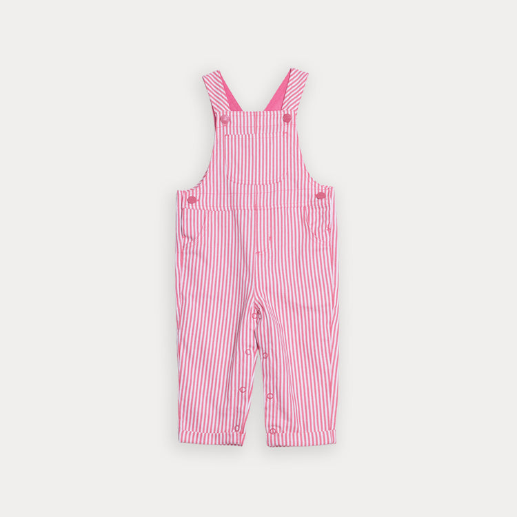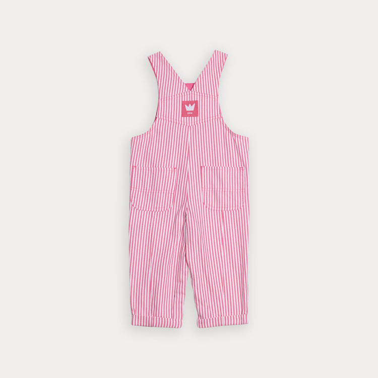 Braga Larga De Twill Con Rayas Blancas Y Rosado Guayaba Para Bebe Niña
