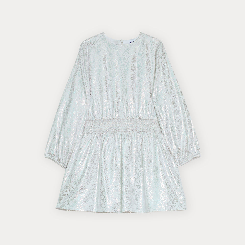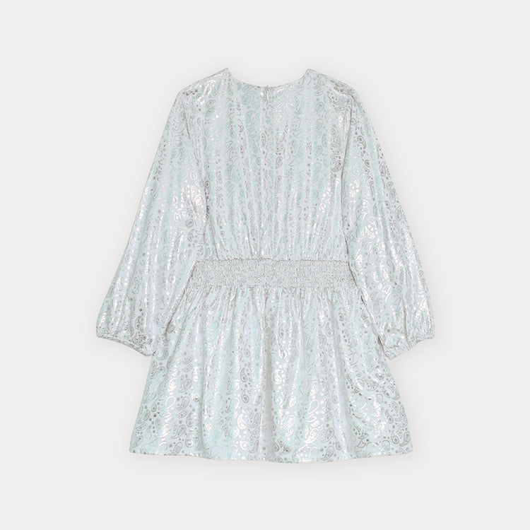 Vestido De Tela Ligera Blanco Manga Larga Con Estampado De Bacterias Plateadas Metálicas Para Niña