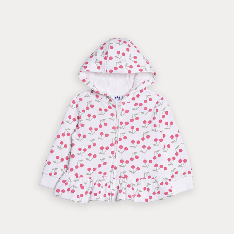 Suéter De Algodón Crema Con Estampado De Cerezas Con Cierre Y Volante Para Bebe Niña