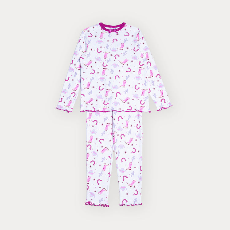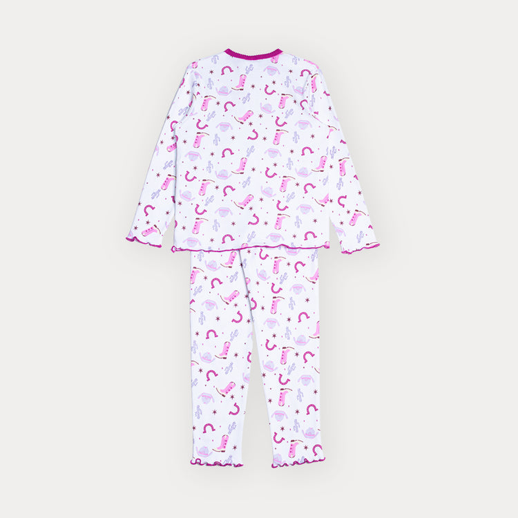 Pijama De Algodón Crema Con Estampado Vaquero Para Niña