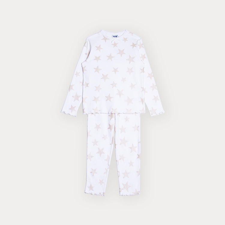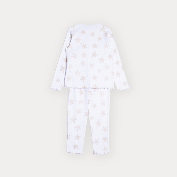 Pijama De Algodón Blanco Con Estampado De Estrellas Metálicas Para Niña