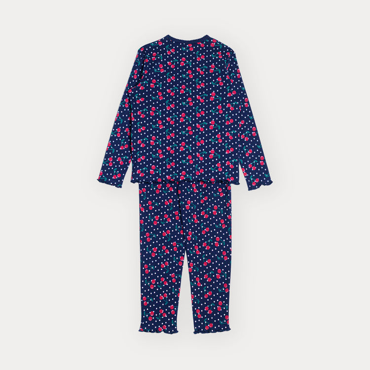 Pijama De Algodón Azul Marino Con Estampado De Cerezas Y Punticos Para Niña